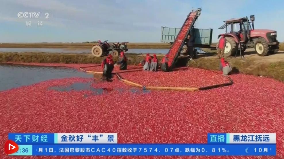 央視網(wǎng)消息:近日,在黑龍江撫遠(yuǎn)市的亞洲最大蔓越莓基地,4200畝蔓越莓迎來采收季。今年當(dāng)?shù)氐穆捷粘扇绾危?/p>