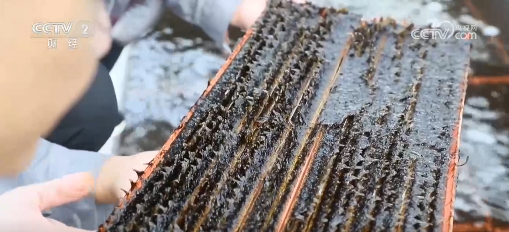 在福建省連江縣官塢村海帶育苗基地,黑壓壓的海帶苗整齊有序地平鋪在流動的海水里。漁民將一塊塊苗簾從苗池里打撈上來,解開繩結(jié)裝入泡沫箱中,準(zhǔn)備陸續(xù)運往大連。 這批海帶苗是當(dāng)?shù)刈灾髋嘤暮?,具有耐高溫、產(chǎn)量高等特點,成活率超過95%,往年在大連海區(qū)養(yǎng)殖5到6個月時間,畝產(chǎn)新鮮海帶可達(dá)30—35噸。