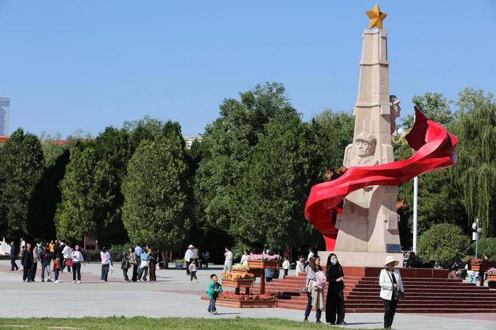 10月2日,游客在甘肅省白銀市會(huì)寧縣紅軍會(huì)寧會(huì)師舊址參觀。