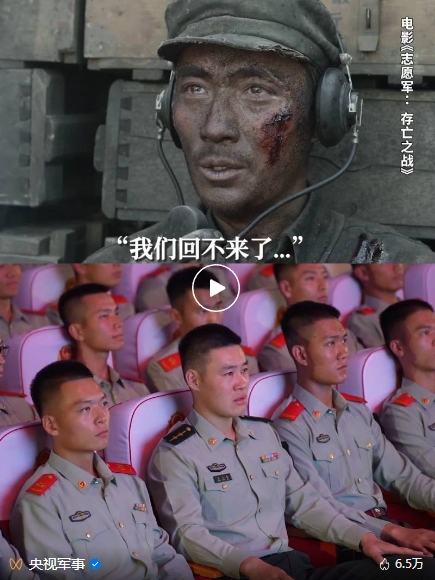 近日,武警北京總隊機動某支隊官兵觀看了電影《志愿軍:存亡之戰(zhàn)》。(該支隊特戰(zhàn)一中隊前身原隸屬電影中“英雄鐵軍”63軍188師,是這部電影中主要描繪的連隊原型。)在電影里,63軍188師營指導(dǎo)員李想說完“一營倒下了,我們回不來了,你們繼續(xù)前進(jìn)”,眼含熱淚的官兵響亮回答:“我們繼續(xù)前進(jìn)!我們繼續(xù)前進(jìn)!我們繼續(xù)前進(jìn)!”這一幕感動了眾多網(wǎng)友。