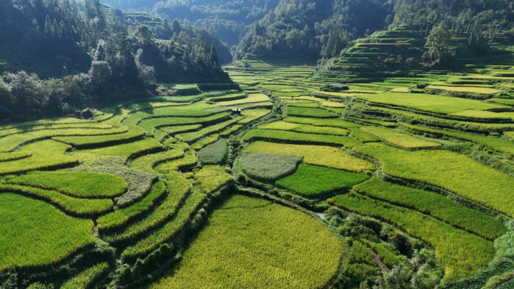 增沖侗寨位于河谷開闊地帶,有著六百余年的建寨歷史,周圍山林環(huán)繞。為了將稀缺的土地資源用到極致,先民們向山林問道,從動植物習性中獲取靈感,靠著古老的農(nóng)耕器具和耕牛,在這片土地上開墾出層層梯田。而后,借助自然的山泉水進行灌溉,于是,一片獨特而又美麗的梯田景觀應(yīng)運而生,這里也成為了如今名副其實的“魚米之鄉(xiāng)”。
