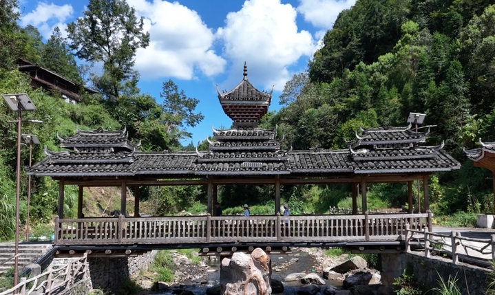 增沖村的布局同樣充滿智慧。三面環(huán)水的地理環(huán)境下,一條水渠巧妙地將水分流到整個寨子,寨內(nèi)水溝、水渠和水塘星羅棋布,這是增沖村得以長久保存的重要因素之一。寨頭那三座傳統(tǒng)的風雨橋,采用加長雙臂梁結(jié)構(gòu),是典型的鄉(xiāng)土建筑。