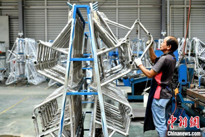 舊鎮(zhèn)工業(yè)園聚集著不少?gòu)纳钲诎徇w而來的臺(tái)企,主要生產(chǎn)自行車車架、腳踏板、車鎖、鈴鐺,鋁管等,形成較為完整的自行車產(chǎn)業(yè)鏈。中新網(wǎng)記者呂明 攝