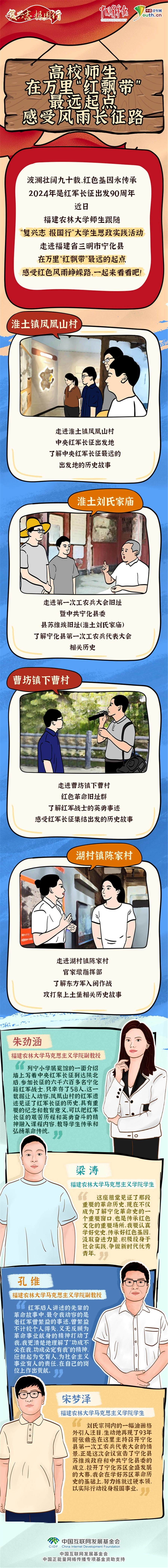 波瀾壯闊九十載,紅色基因永傳承。2024年是紅軍長(zhǎng)征出發(fā)90周年,近日,福建農(nóng)林大學(xué)師生跟隨“復(fù)興志 報(bào)國(guó)行”大學(xué)生思政實(shí)踐活動(dòng),走進(jìn)福建省三明市寧化縣,在萬(wàn)里“紅飄帶”最遠(yuǎn)的起點(diǎn),感受紅色風(fēng)雨崢嶸路,一起來(lái)看看吧!