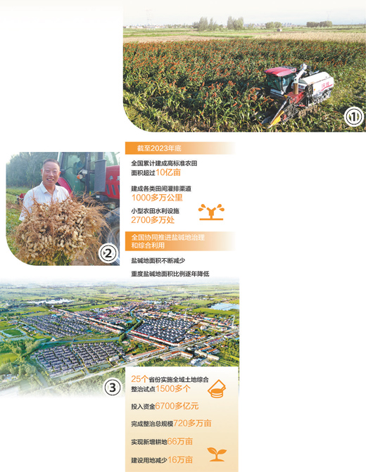 黨的十八大以來,高標準農(nóng)田建設持續(xù)推進,耕地質(zhì)量總體進入持續(xù)改善、穩(wěn)中有升階段,鹽堿地治理和綜合利用協(xié)同推進,全域土地綜合整治試點取得顯著效益,一系列“藏糧于地”政策舉措落實落細,生產(chǎn)向綠、效益向優(yōu),為保障糧食安全打下堅實基礎。