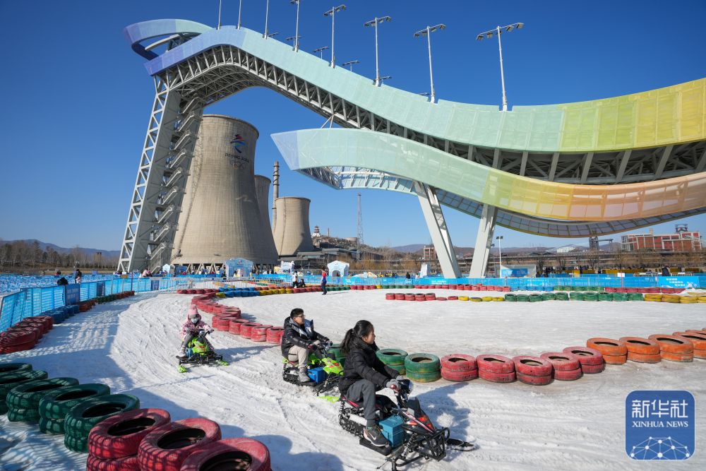 游客在首鋼滑雪大跳臺(tái)下的“首鋼園冰雪匯”體驗(yàn)雪上游樂項(xiàng)目(2023年1月31日攝)。 新華社記者 鞠煥宗 攝