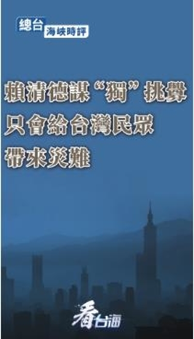 《國際銳評》:賴清德謀“獨(dú)”挑釁是臺海和平穩(wěn)定的禍根亂源