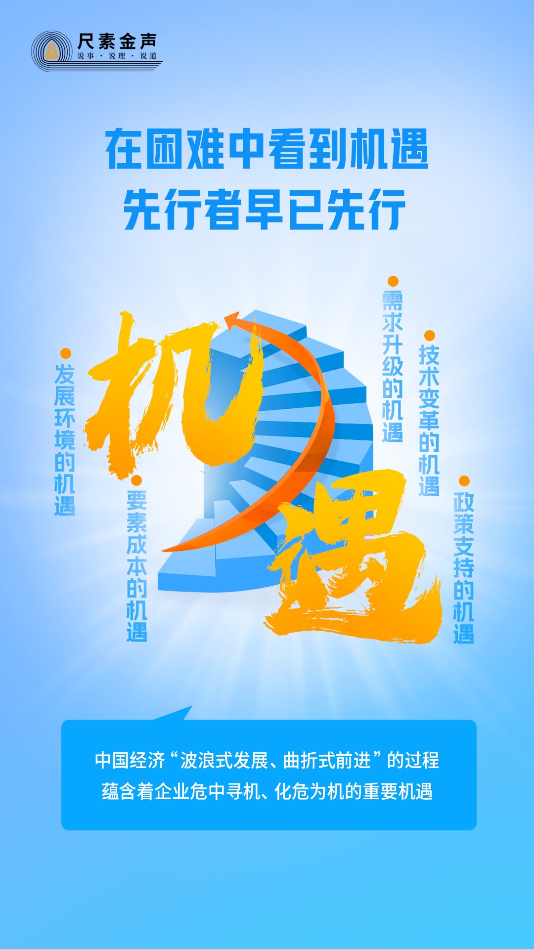 辯證看,應(yīng)對(duì)困難、解決問(wèn)題的過(guò)程,往往也是育新機(jī)、開(kāi)新局的過(guò)程。當(dāng)前,中國(guó)經(jīng)濟(jì)“波浪式發(fā)展、曲折式前進(jìn)”的過(guò)程,蘊(yùn)含著企業(yè)危中尋機(jī)、化危為機(jī)的重要機(jī)遇。