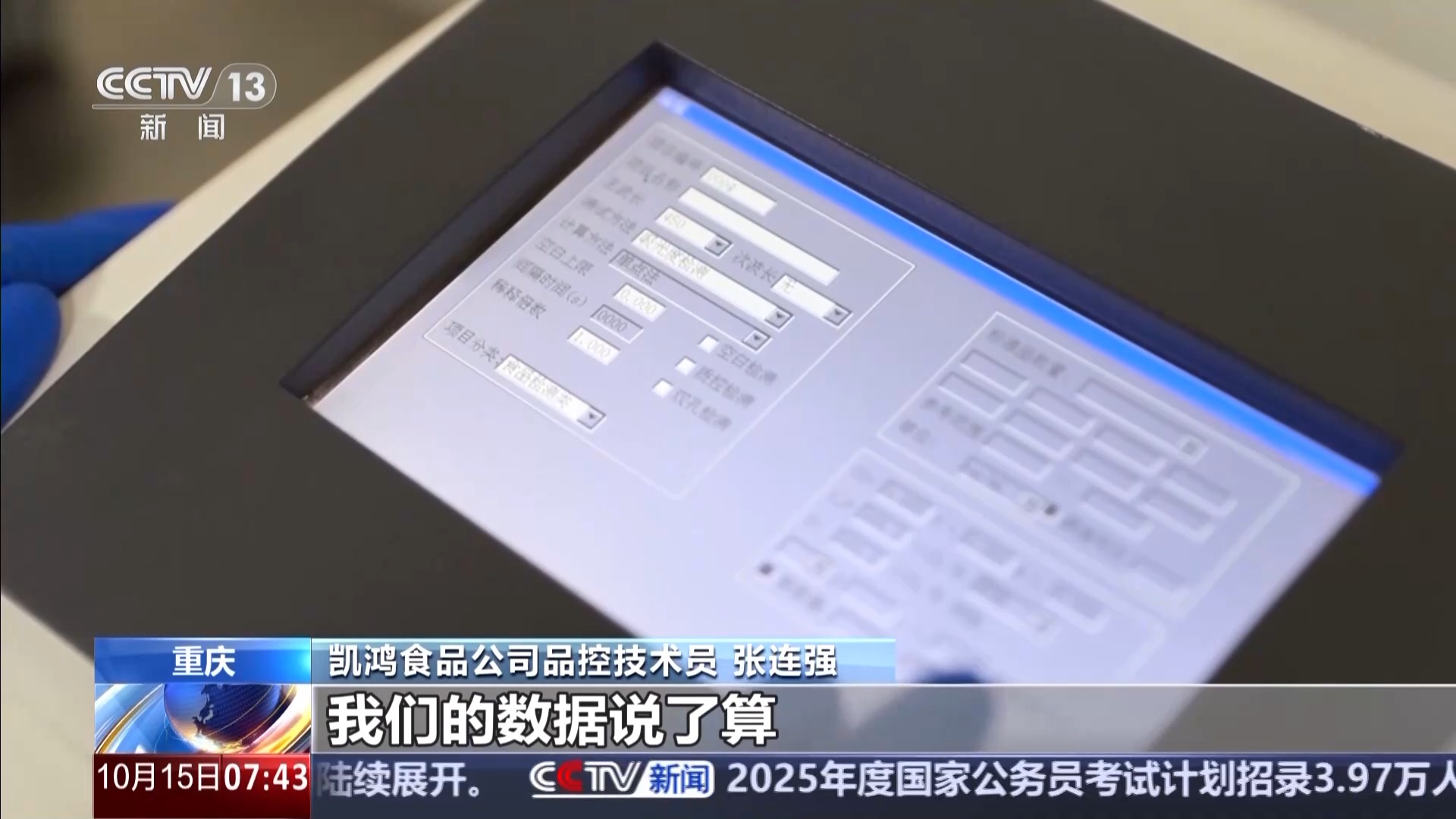 重慶凱鴻食品公司品控技術員 張連強:像牛肉就要檢測七項,比如說里面的過氧化脂,精確到了每百克不得超過0.25克,非常嚴格。產(chǎn)品好不好,能不能走向市場,老板說了不算,我們的數(shù)據(jù)說了算。