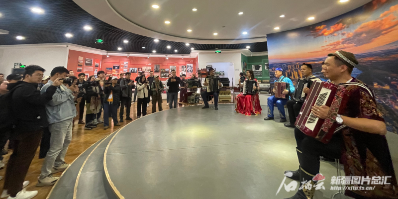 10月15日下午,參加第六屆世界媒體峰會(huì)的外媒代表觀看手風(fēng)琴表演。石榴云/新疆日?qǐng)?bào)記者 郭玲 攝
