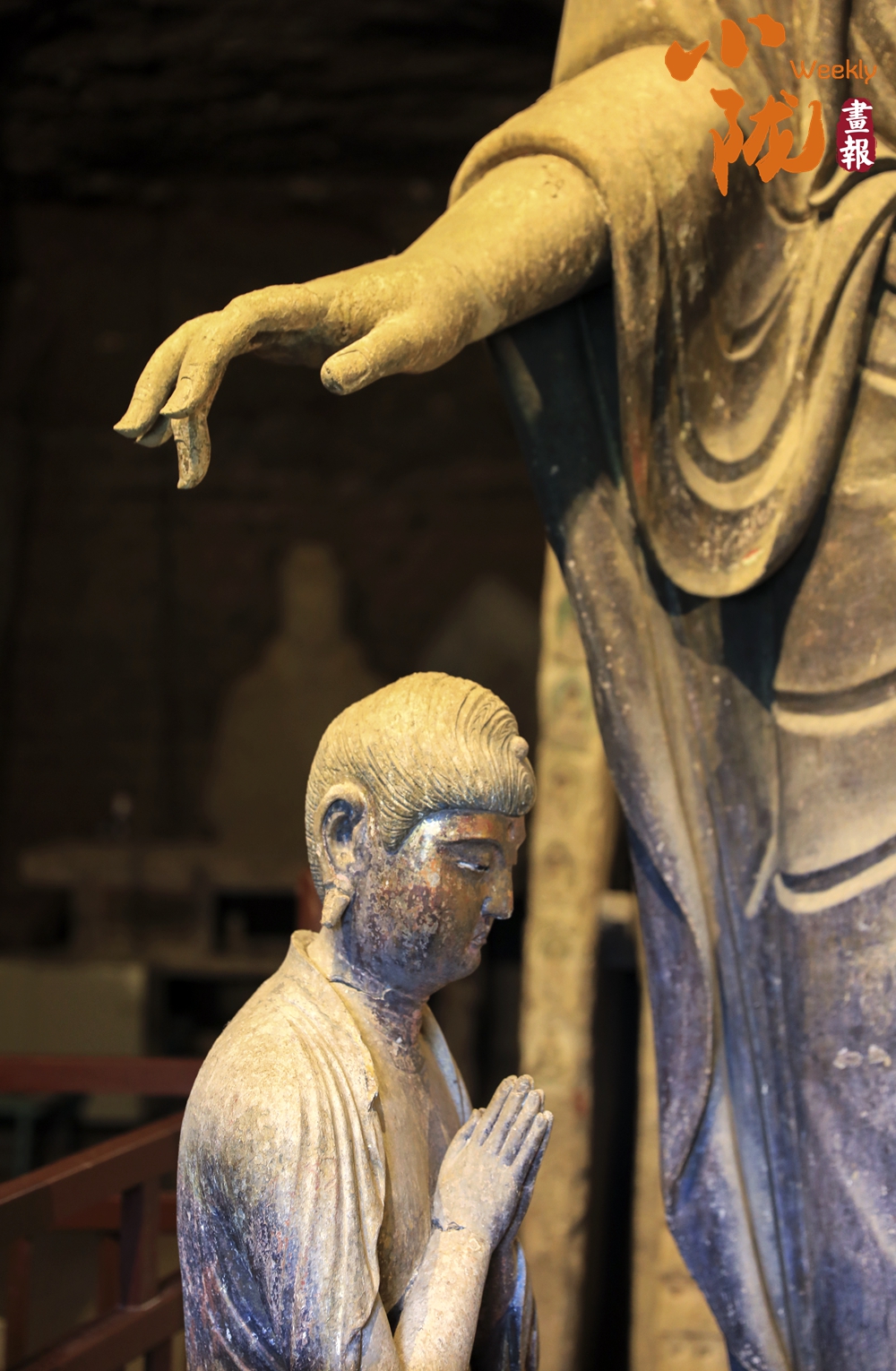 麥積山的塑像,除早期作品外,從北魏開始,幾乎所有的佛像都是俯首下視的體態(tài),有和藹可親的面容,并且面帶微笑。雖為佛祖,卻像世俗的人,是人們美好愿望的化身。