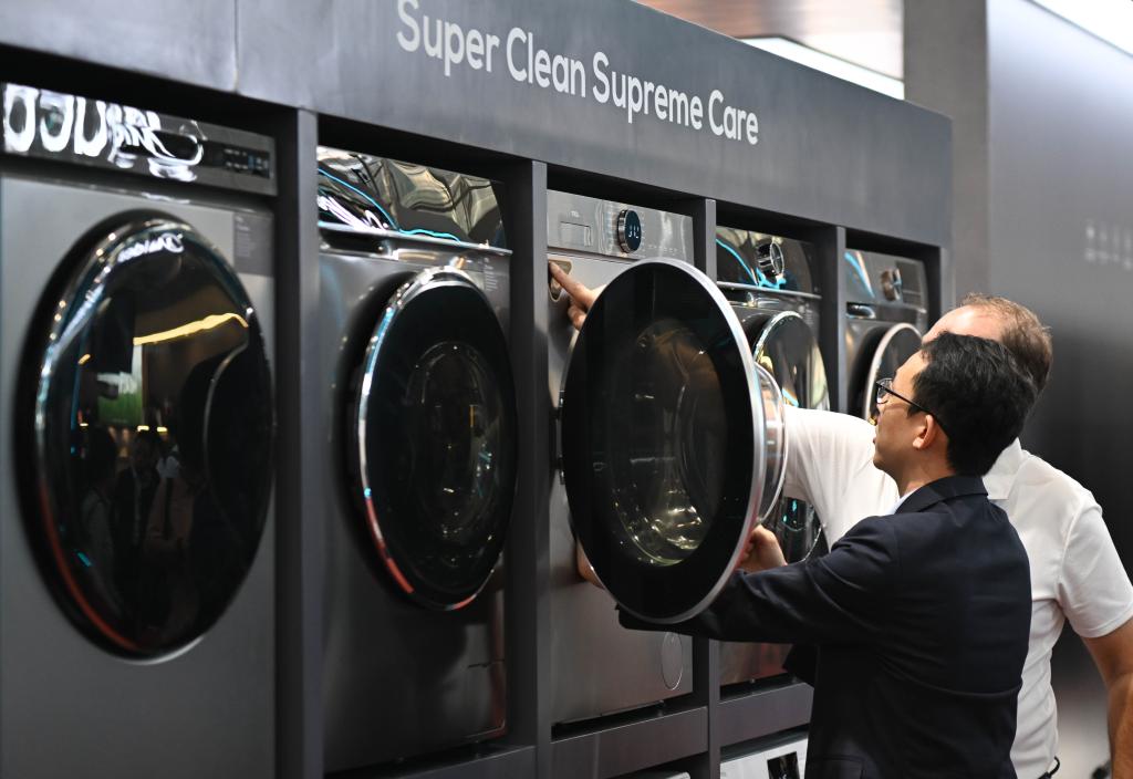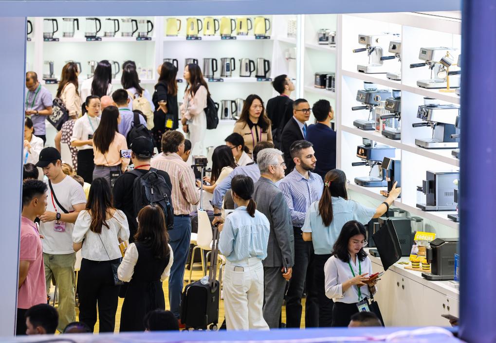 10月15日,境外采購商觀看參展企業(yè)家電產(chǎn)品。新華社記者鄧華 攝