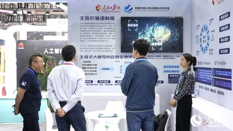 人民日報社傳播內(nèi)容認知全國重點實驗室展區(qū)吸引眾多觀眾駐足了解。人民網(wǎng)記者 吳茜薇攝