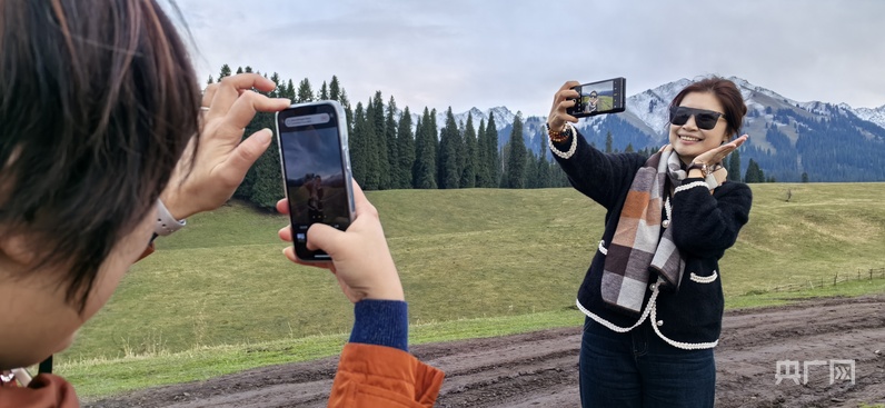 第二次來到庫爾德寧的李明站在草原之上、雪山之下、云杉之中,舉起相機拍個不停?!靶陆木吧挥心阏嬲驹谶@里了,用自己的眼睛看到,你就會覺得什么是美好,無法用語言去形容的美,直抵心靈的美。”李明說,雖然他是第二次來,但和第一次來時看到的風景又不一樣了,新疆真是一年四季都會有不同的景色,任何時候來都非常值得,不虛此行。