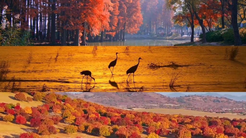 江蘇黿頭渚秋意漸濃,與太湖相映成趣;山東黃河入???,成群鳥(niǎo)兒在濕地覓食、嬉戲;山西太行山色彩繽紛,秋色宜人。