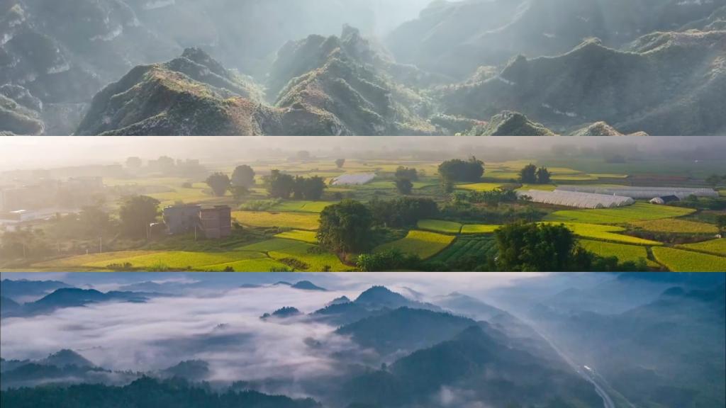 云南永善千畝梯田,一派豐收景象;貴州銅仁,秋日云海景觀浩瀚縹緲;新疆額爾齊斯河流域,成群候鳥(niǎo)飛翔在湖光秋色之中。