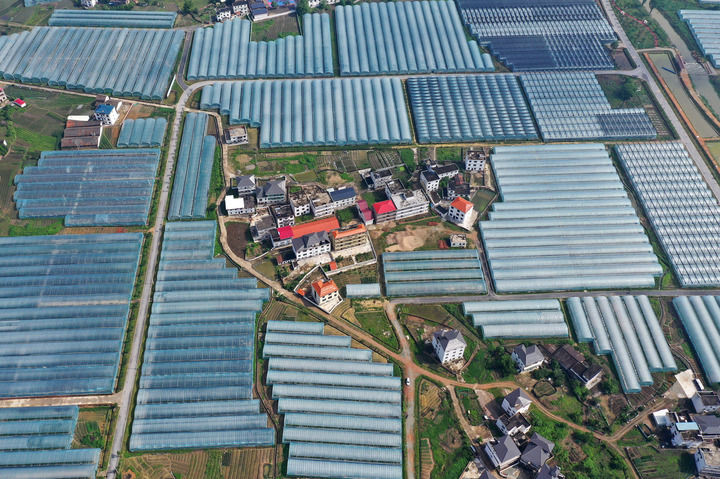這是江西省贛州市于都縣梓山鎮(zhèn)潭頭村的果蔬種植基地(2021年4月29日攝,無人機(jī)照片)。新華社記者 萬象 攝