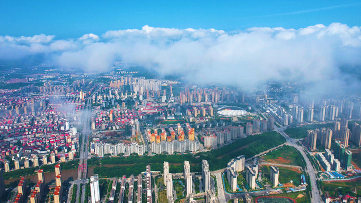 江西省瑞金市城區(qū)景色(2024年5月6日攝,無人機(jī)照片)。新華社發(fā)(劉黎明 攝)