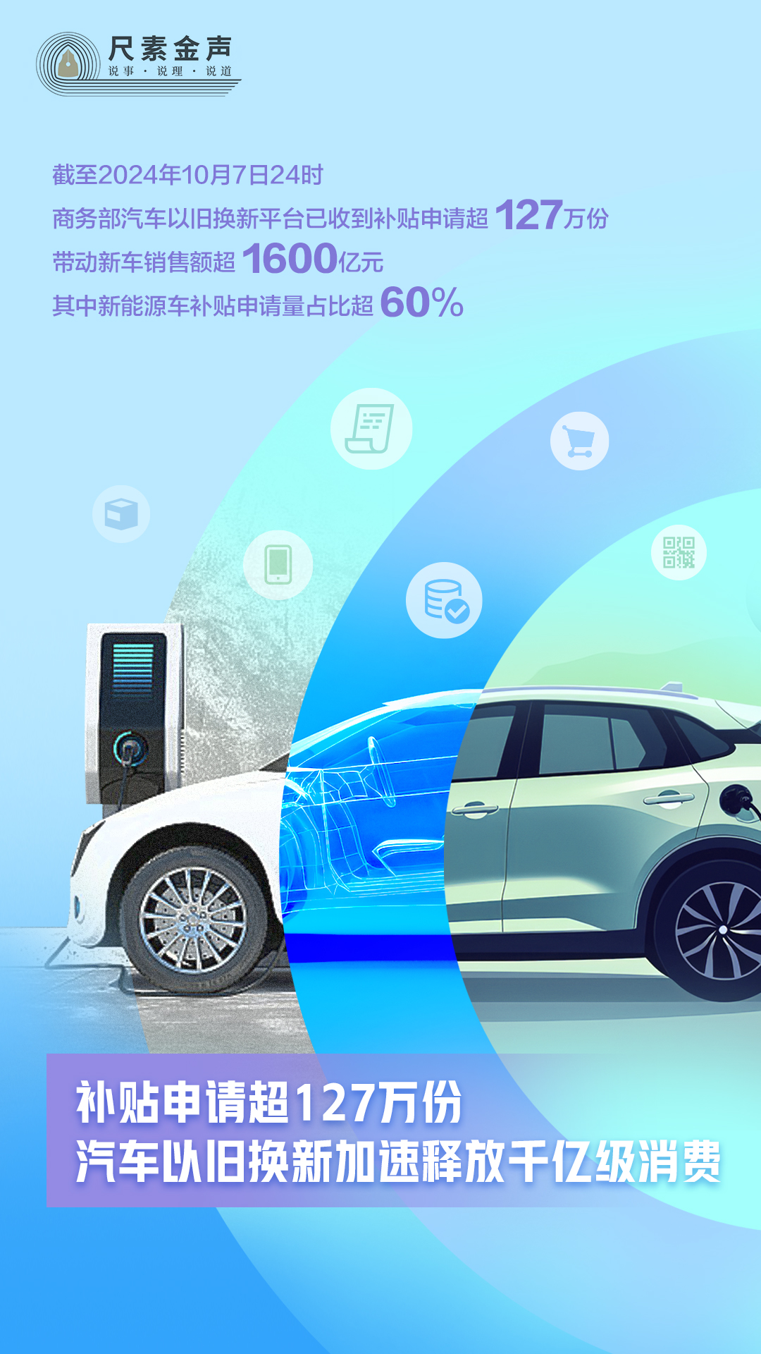 數(shù)據(jù)顯示,截至10月7日24時,商務(wù)部汽車以舊換新平臺已收到補(bǔ)貼申請超127萬份,帶動新車銷售額超1600億元,其中新能源車補(bǔ)貼申請量占比超60%。1—8月,全國報廢汽車回收量比上年同期增長42.4%,特別是汽車以舊換新政策實施以來的5月、6月、7月和8月,同比增幅分別達(dá)55.6%、72.9%、93.7%和73.8%。
