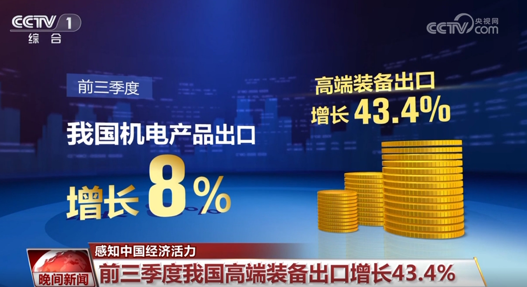 此外,創(chuàng)新也讓中國(guó)制造更受青睞。前三季度,我國(guó)機(jī)電產(chǎn)品出口增長(zhǎng)8%,占出口總值的59.3%。其中,高端裝備出口增長(zhǎng)43.4%,集成電路、船舶、通用機(jī)械等高技術(shù)、高附加值產(chǎn)品出口實(shí)現(xiàn)兩位數(shù)增長(zhǎng),外貿(mào)結(jié)構(gòu)持續(xù)優(yōu)化。