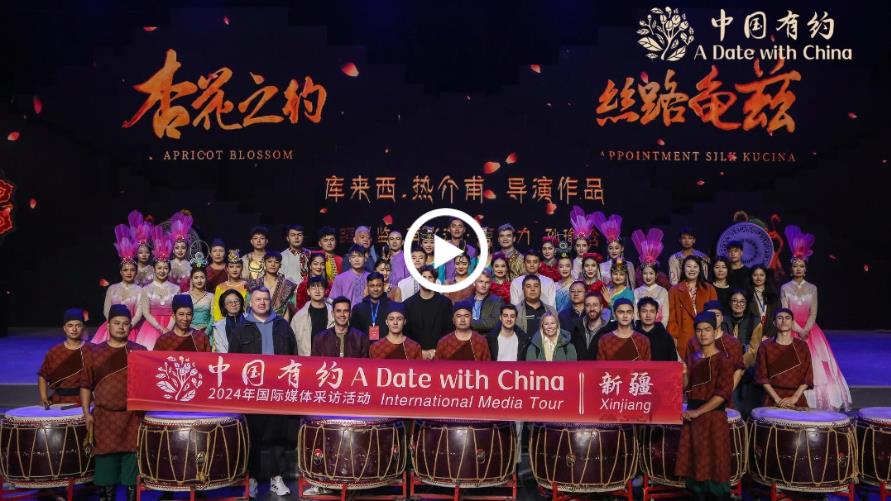 10月22日,“中國(guó)有約·相約新疆”2024年國(guó)際媒體采訪團(tuán)走進(jìn)庫(kù)車大馕城。2023年大馕城中廳進(jìn)行升級(jí)改造,修建了大型演藝舞臺(tái),打造一臺(tái)以古代龜茲樂舞和當(dāng)下庫(kù)車非遺相融合的樂舞詩劇目。國(guó)際媒體采訪團(tuán)成員在欣賞了精彩的表演之后,走上舞臺(tái)與演員們一起上演最炫民族風(fēng),感受著千年古城人民的熱情與友好。