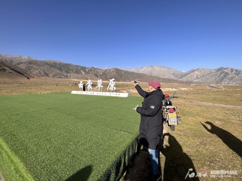 哥倫比亞籍自媒體創(chuàng)作者高飛覺得和盛夏草原濃烈的綠相比,秋日草原別有一番風(fēng)味。石榴云/新疆日報 記者張小宓攝