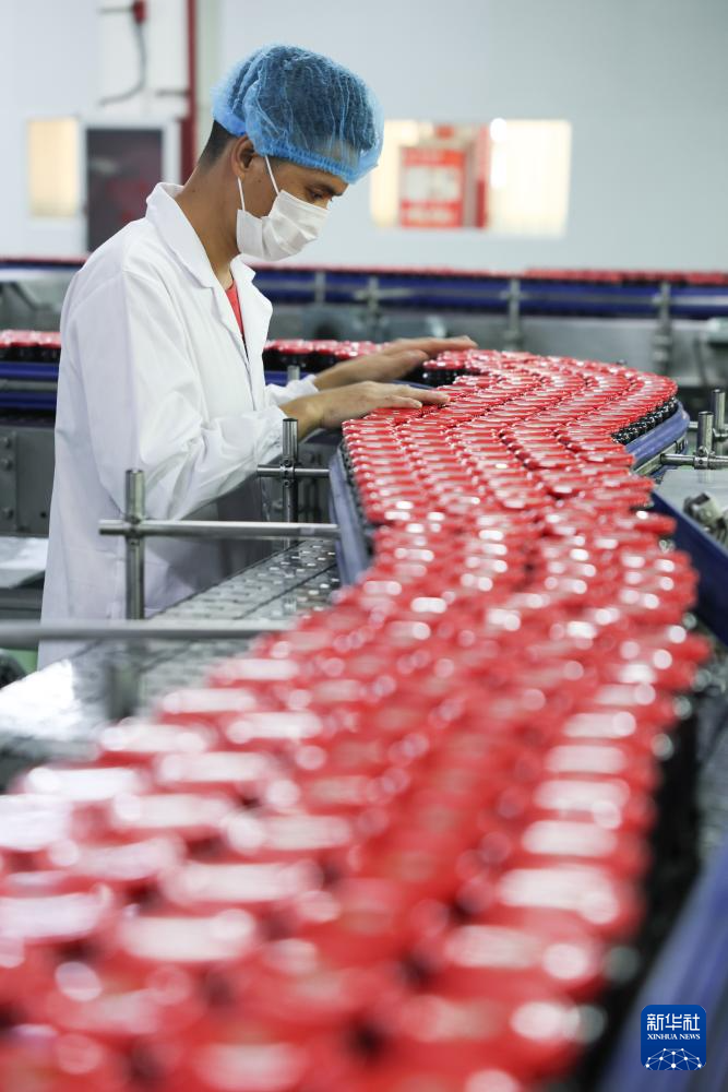 用于制作辣椒醬的黃豆在生產(chǎn)線上被精選出來(8月22日攝)。新華社記者 劉續(xù) 攝