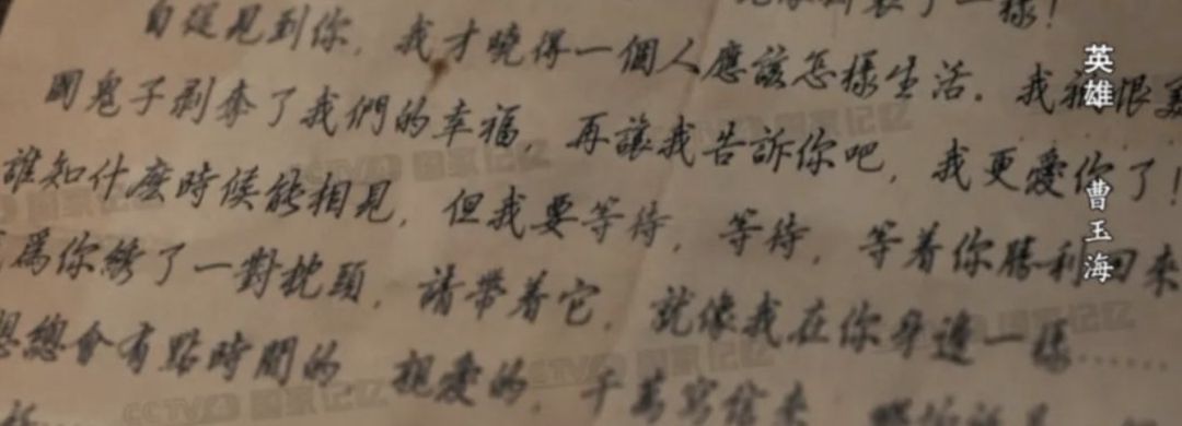 曹玉海未婚妻寫給曹玉海的信。來源:CCTV國家記憶