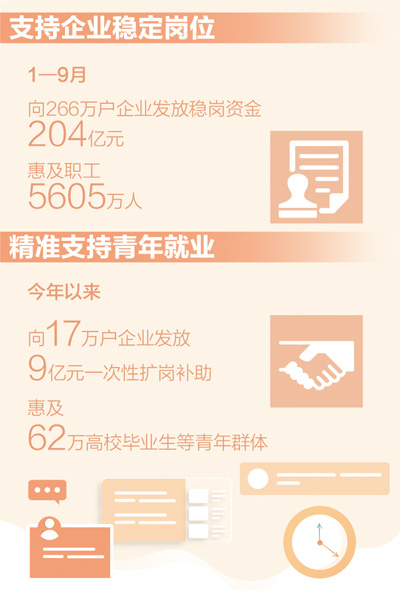 延續(xù)實(shí)施一攬子援企穩(wěn)崗政策,前9月減收失業(yè)保險費(fèi)1309億元