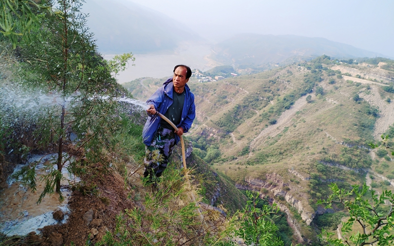 這支隊(duì)伍平均年齡超過45歲。從2004年至今的20年間,植樹攔泥沙、造林保水土,他們?cè)谝舜h種下近4萬畝、280多萬棵樹,為宜川縣境內(nèi)黃河沿岸石質(zhì)山地披上了3.7萬畝“綠裝”。
