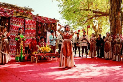 尉犁縣羅布人村寨傳統(tǒng)婚禮表演。豐盼攝