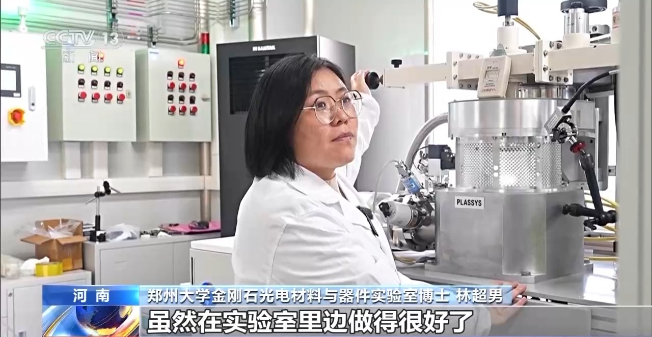 鄭州大學金剛石光電材料與器件實驗室博士 林超男:雖然在實驗室里邊做得很好了,但是1臺設備跟100臺設備來對比,確實差別還是很大的。有很多實驗室沒有遇到過的問題,一步一步去克服這些困難。