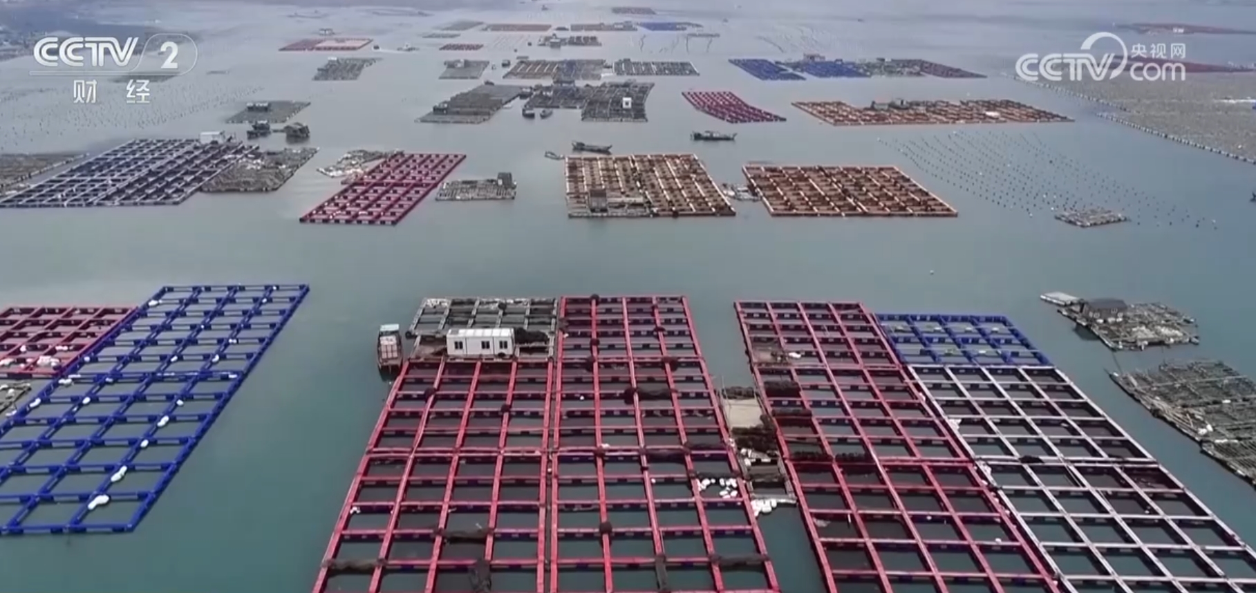 在湛藍的海面上,成片的漁排和網(wǎng)箱隨波蕩漾,一艘艘船只穿梭其間,接力運送著剛剛捕撈上來的章魚。漁民們配合默契,隨著漁網(wǎng)的收縮,成群的章魚浮至水面,漁民們撈起一網(wǎng)又一網(wǎng)的章魚放入身旁的筐中,隨后倒入活水運輸船準備出售。