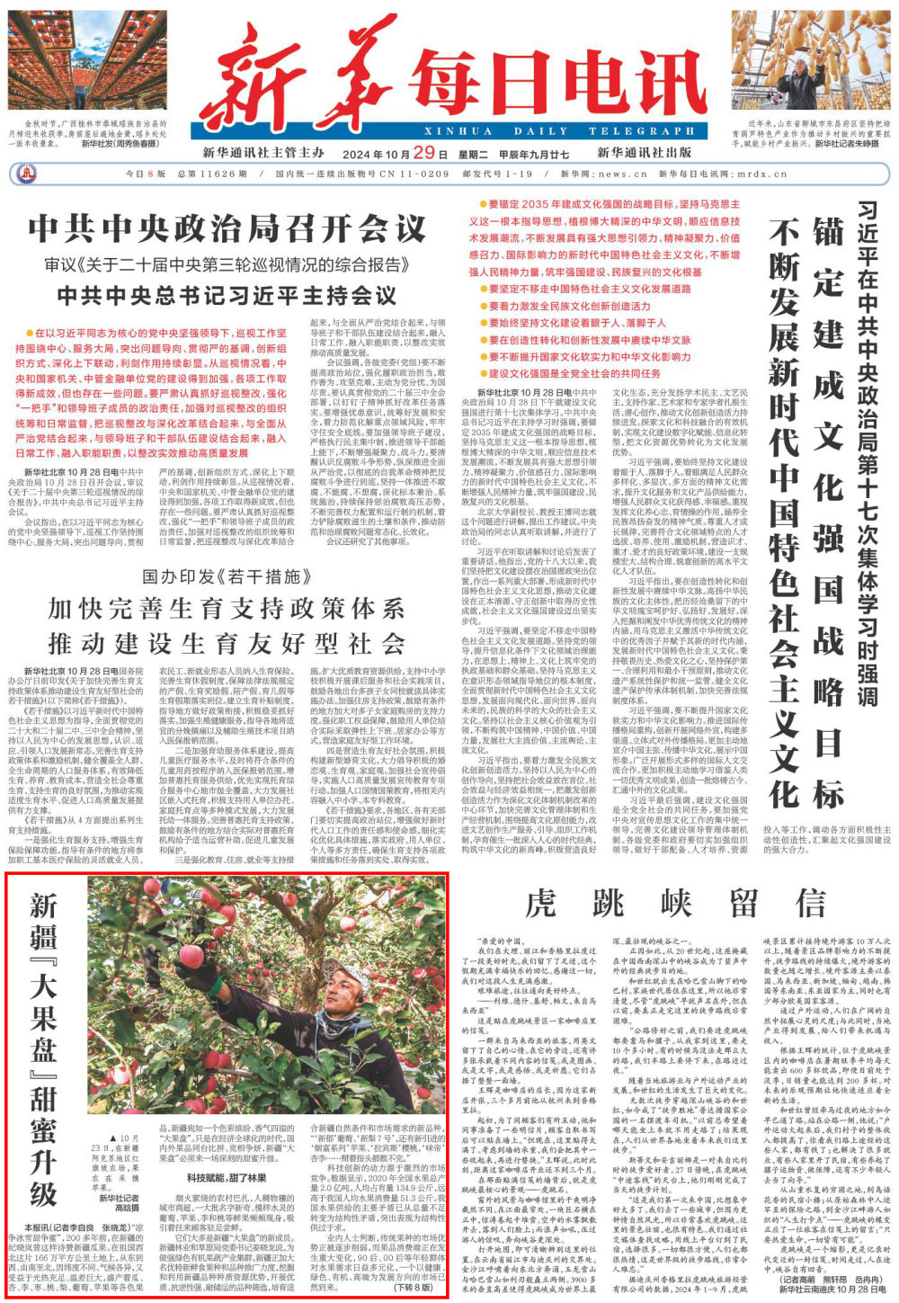 它們大多是新疆“大果盤”的新成員。新疆林業(yè)和草原局黨委書記姜曉龍說,為做強(qiáng)綠色有機(jī)果蔬產(chǎn)業(yè)集群,新疆正加大名優(yōu)特新鮮食果種和品種推廣力度,挖掘和利用新疆品種種質(zhì)資源優(yōu)勢,開展優(yōu)質(zhì)、抗逆性強(qiáng)、耐儲運(yùn)的品種篩選,培育適合新疆自然條件和市場需求的新品種,“‘新郁’葡萄、‘新梨7號’,還有新引進(jìn)的‘煙富系列’蘋果、‘拉賓斯’櫻桃,‘味帝’杏李……掰著指頭都數(shù)不完?!?/p>