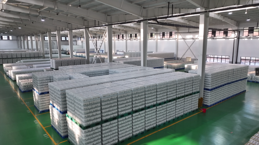 2024年10月30日拍攝的丹江口武當山水飲料有限公司倉庫。(王世霖 攝)