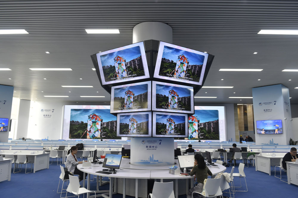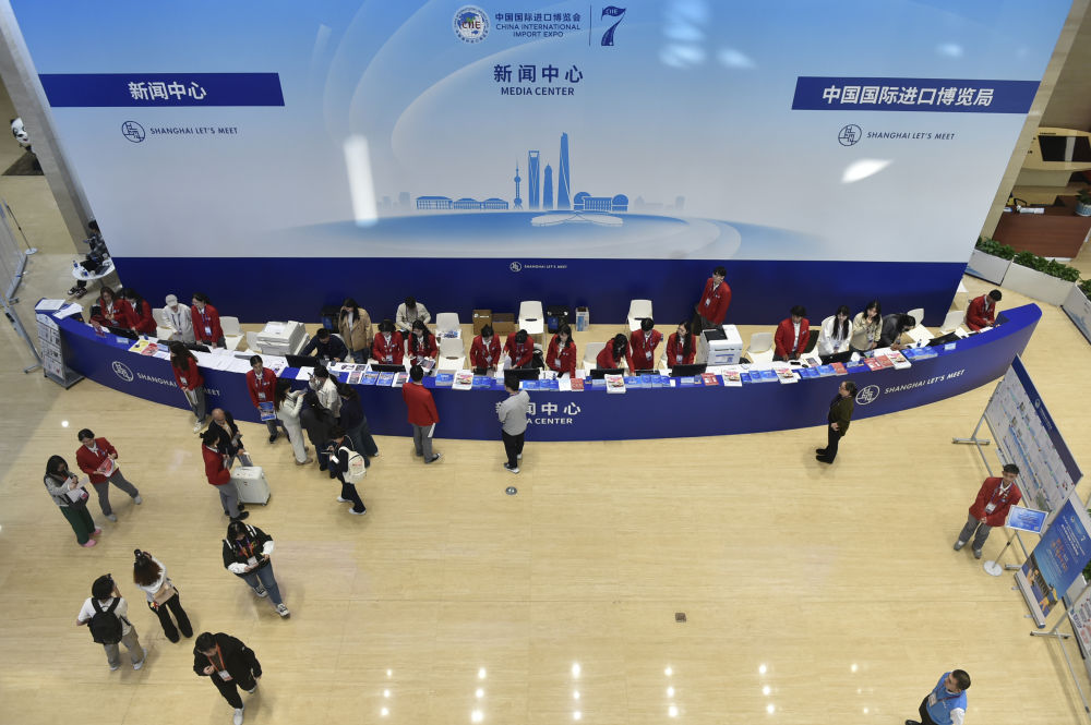 這是11月4日拍攝的第七屆進博會新聞中心。