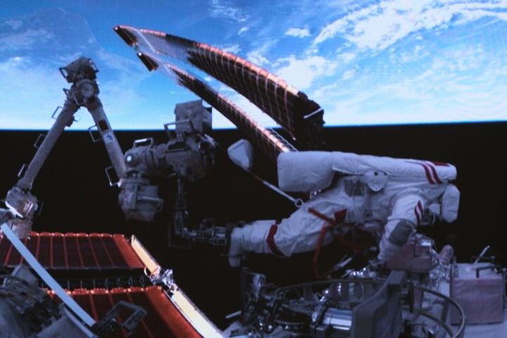 2024年11月4日,神舟十八號(hào)航天員葉光富安全順利出艙。新華社記者 李鑫 攝