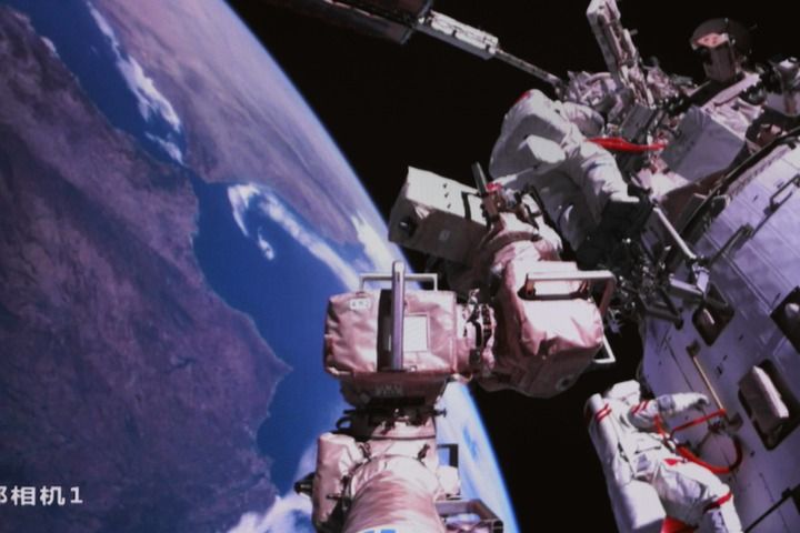 他們二人身著我國(guó)新一代“飛天”艙外航天服,上面的航天員簽名見(jiàn)證了中國(guó)航天一個(gè)又一個(gè)紀(jì)錄——