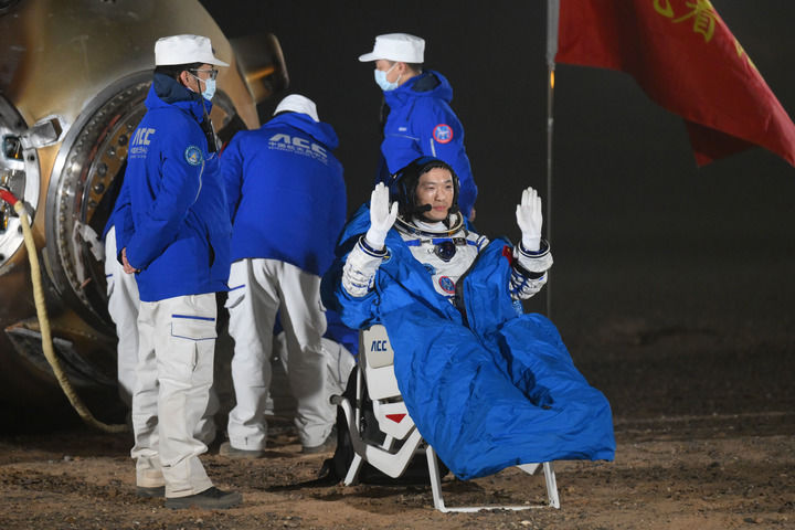 11月4日1時(shí)24分,返回艙安然落地?!吧裰凼颂?hào)報(bào)告,已經(jīng)安全著陸!”指令長(zhǎng)葉光富的聲音傳來(lái)。