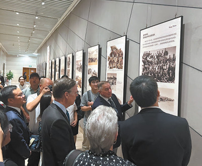 中美嘉賓在湖南長沙博物館參觀飛虎隊主題歷史圖片展。