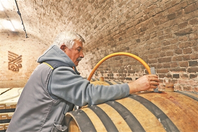 在酒莊的地下酒窖內(nèi),一排排橡木桶有序排放,員工正在檢查環(huán)境溫度和濕度。酒莊首席釀酒師王俐介紹,弗魯什卡山產(chǎn)出的葡萄酒口感很接近中國消費者的喜好。酒莊特意選擇了梅洛等葡萄品種,并采用獨特加工工藝,使葡萄酒的風味更加柔和細膩。她拿出一款“奎特梅洛”紅葡萄酒介紹:“這是專門針對中國市場推出的產(chǎn)品,會在橡木桶中存放18個月。這款產(chǎn)品是酒莊在中國市場的暢銷款。”