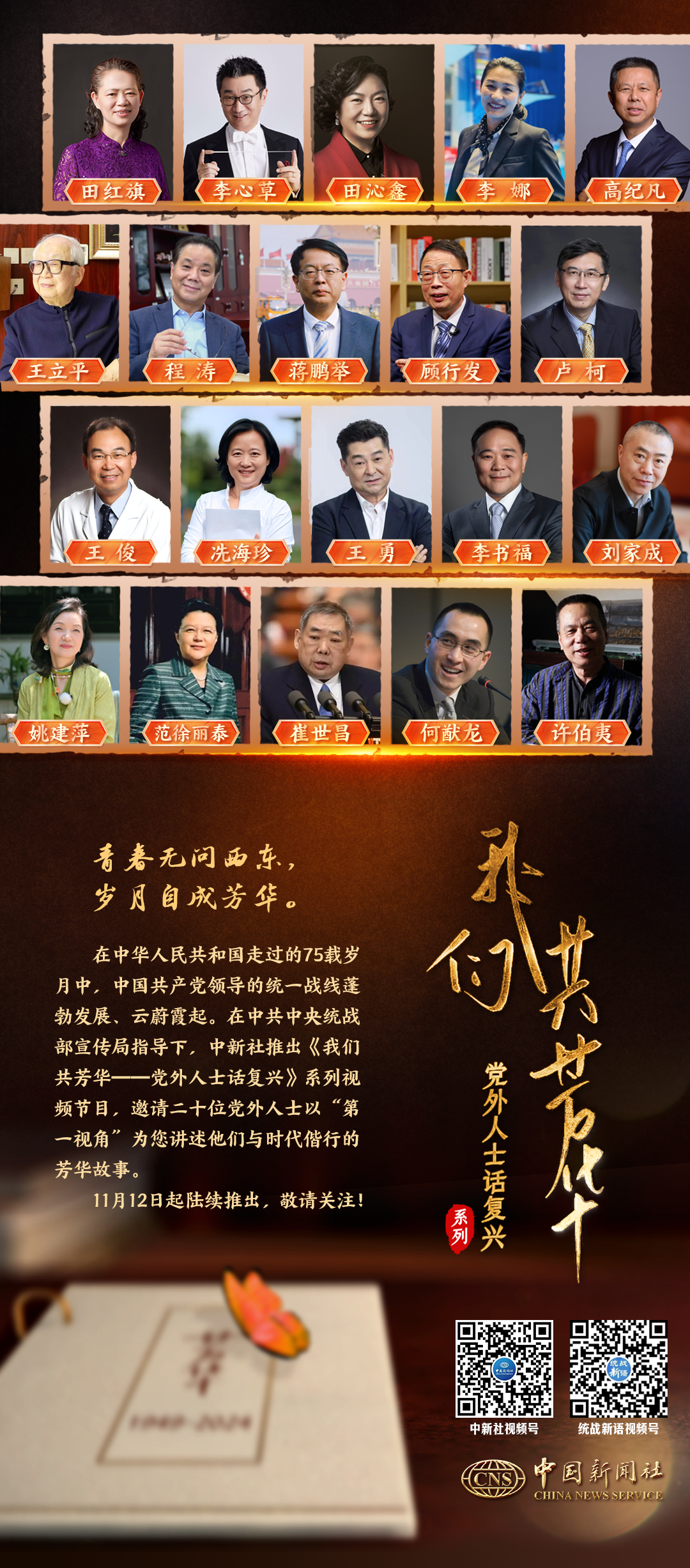 跨山越海,我們赴約依舊,雨雪風(fēng)霜,待你芳華如初。在中共中央統(tǒng)戰(zhàn)部宣傳局指導(dǎo)下,中新社推出特別策劃《我們共芳華——黨外人士話復(fù)興》,“第一視角”講述新中國走過的七十五載光陰。歷時(shí)八個(gè)月傾情制作,百余場次拍攝記錄二十位嘉賓的芳華記憶。超強(qiáng)嘉賓陣容,請戳海報(bào)↓↓↓