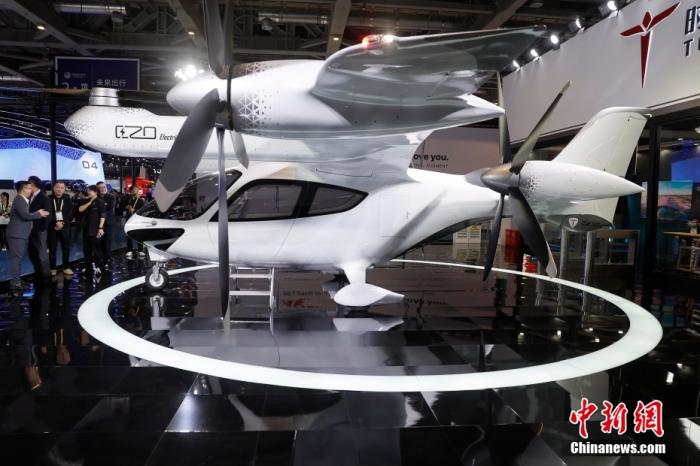 11月5日,在第七屆進博會汽車展區(qū),上海時的科技公司展示E20傾轉旋翼載人電動垂直起降飛行器。第七屆中國國際進口博覽會于11月5日至10日在上海舉行。中新社記者 殷立勤 攝