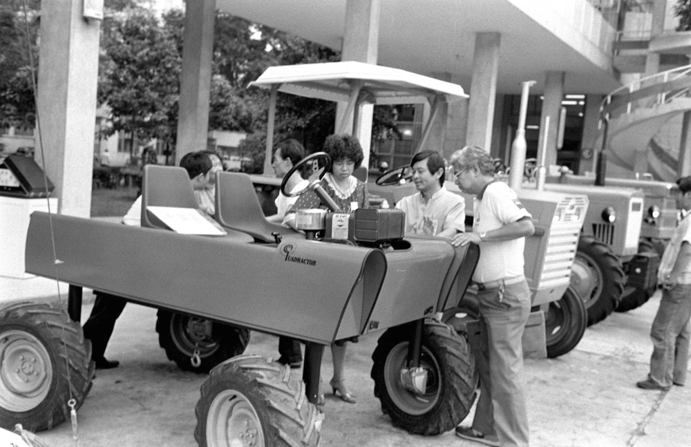 1983年,第54屆廣交會(huì)上首次展出北京拖拉機(jī)廠(chǎng)生產(chǎn)的四輪驅(qū)動(dòng)拖拉機(jī),受到客商歡迎。新華社記者 黃鑒秋 攝