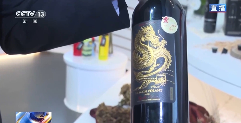 要特別介紹的是一款干紅葡萄酒。這款葡萄酒,酒瓶里面,是來自法國波爾多一家葡萄酒莊園陳釀18個(gè)月的美酒;而酒瓶外面,也是一個(gè)亮點(diǎn),是由中國和法國設(shè)計(jì)師聯(lián)合設(shè)計(jì)的極具中國文化特色的金龍和長城圖案包裝,這不僅是一瓶佳釀,更是中法文化交流、友好往來的見證。