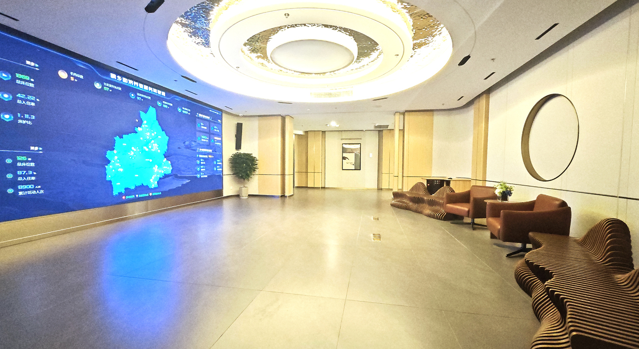 進(jìn)入中心,映入眼簾的是占據(jù)整面墻的智能大屏,中心內(nèi)所有公共區(qū)域的實(shí)時(shí)場(chǎng)景一覽無余。