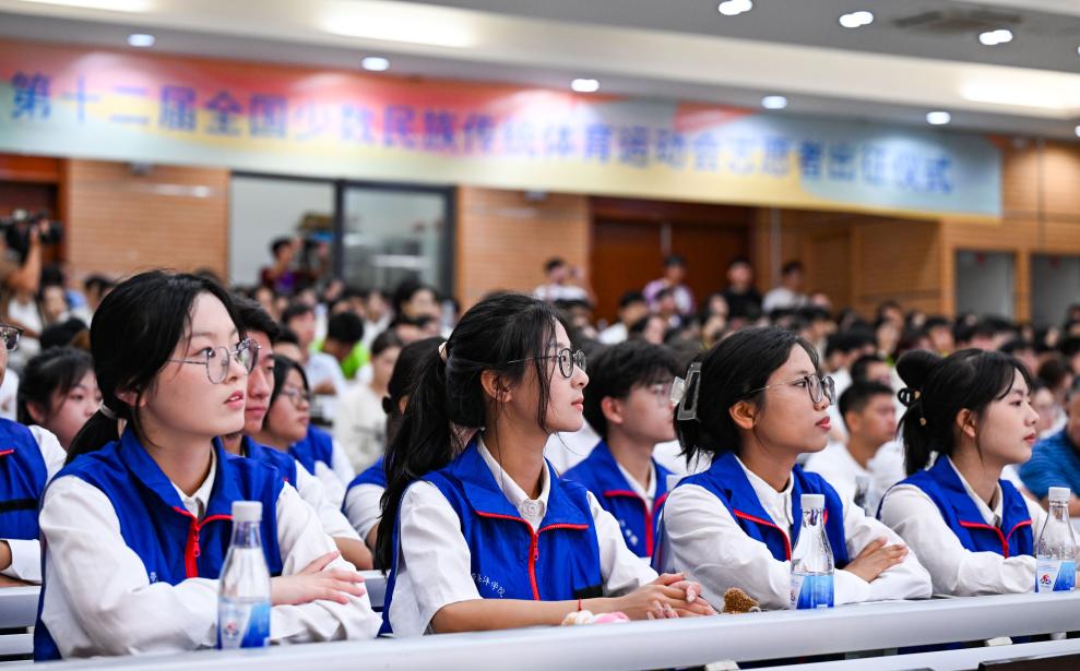 11月4日,第十二屆全國少數民族傳統(tǒng)體育運動會志愿者在出征儀式上。新華社記者 楊冠宇 攝