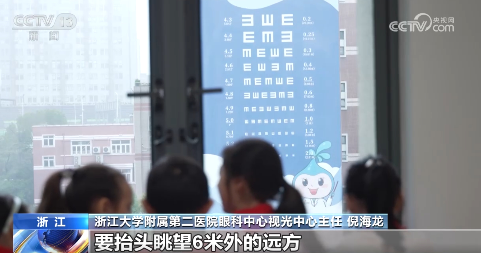 保護(hù)視力,既需要營造有益視力的學(xué)習(xí)環(huán)境,還需要孩子們加強(qiáng)視力鍛煉。在浙江湖州南潯區(qū)善璉學(xué)校,每天上下午各一個時間段,學(xué)生們就會在老師的帶領(lǐng)下做“望遠(yuǎn)心遠(yuǎn)”課間操,由近而遠(yuǎn)觀察100米以外的物體,可以辨認(rèn)教學(xué)樓外墻的大幅視力表,也可以看看空中飛翔的小鳥,還可以數(shù)數(shù)樹上結(jié)的果子,通過遠(yuǎn)近交替聚焦,鍛煉遠(yuǎn)視能力,預(yù)防近視。