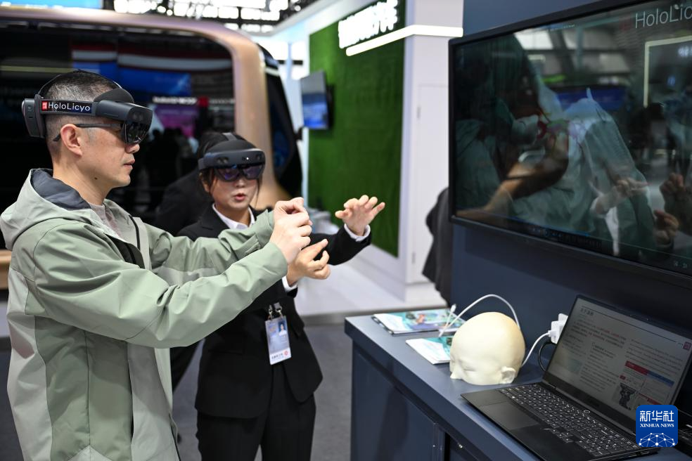 11月19日,在2024年世界互聯(lián)網(wǎng)大會(huì)“互聯(lián)網(wǎng)之光”博覽會(huì)上,參觀者體驗(yàn)一款全息智能醫(yī)學(xué)影像系統(tǒng)做手術(shù)的過(guò)程。