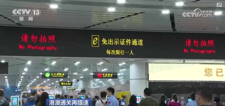 總臺記者 趙菁:我現(xiàn)在是在拱北口岸的旅客出境大廳的“免出示證件”通道,從今天0時(shí)起,因私經(jīng)常往來港澳地區(qū)的人員,可走這條“免出示證件”通道通行。